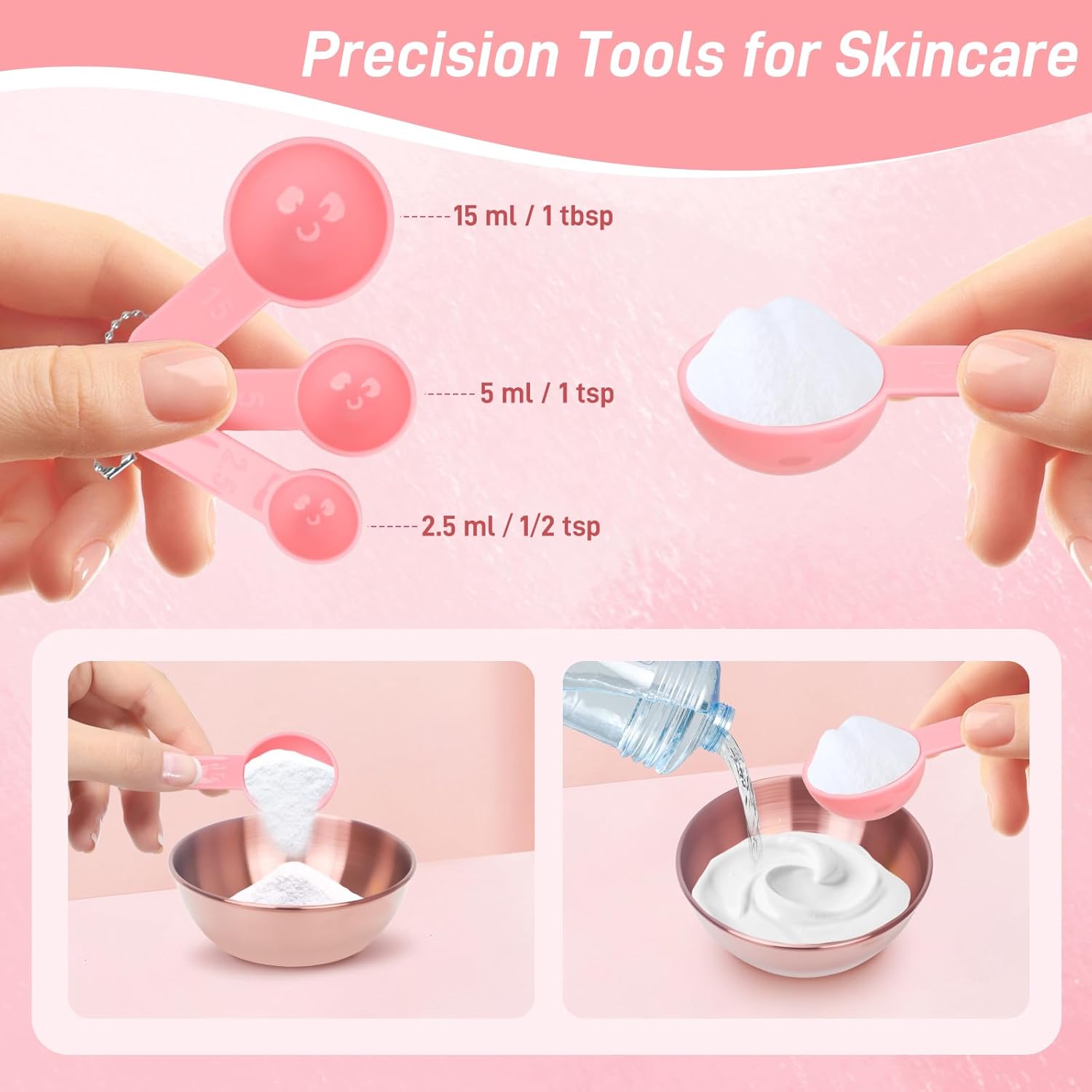 Precision Measuring Spoons: Our measuring spoons are a must-have esthetician essential, featuring three key sizes—1/2 tsp (2.5 ml), 1 tsp (5 ml), and 1 tbsp (15 ml) with clear, permanent markings. Perfect for custom mask formulations and professional treatments, they deliver precise measurements every time