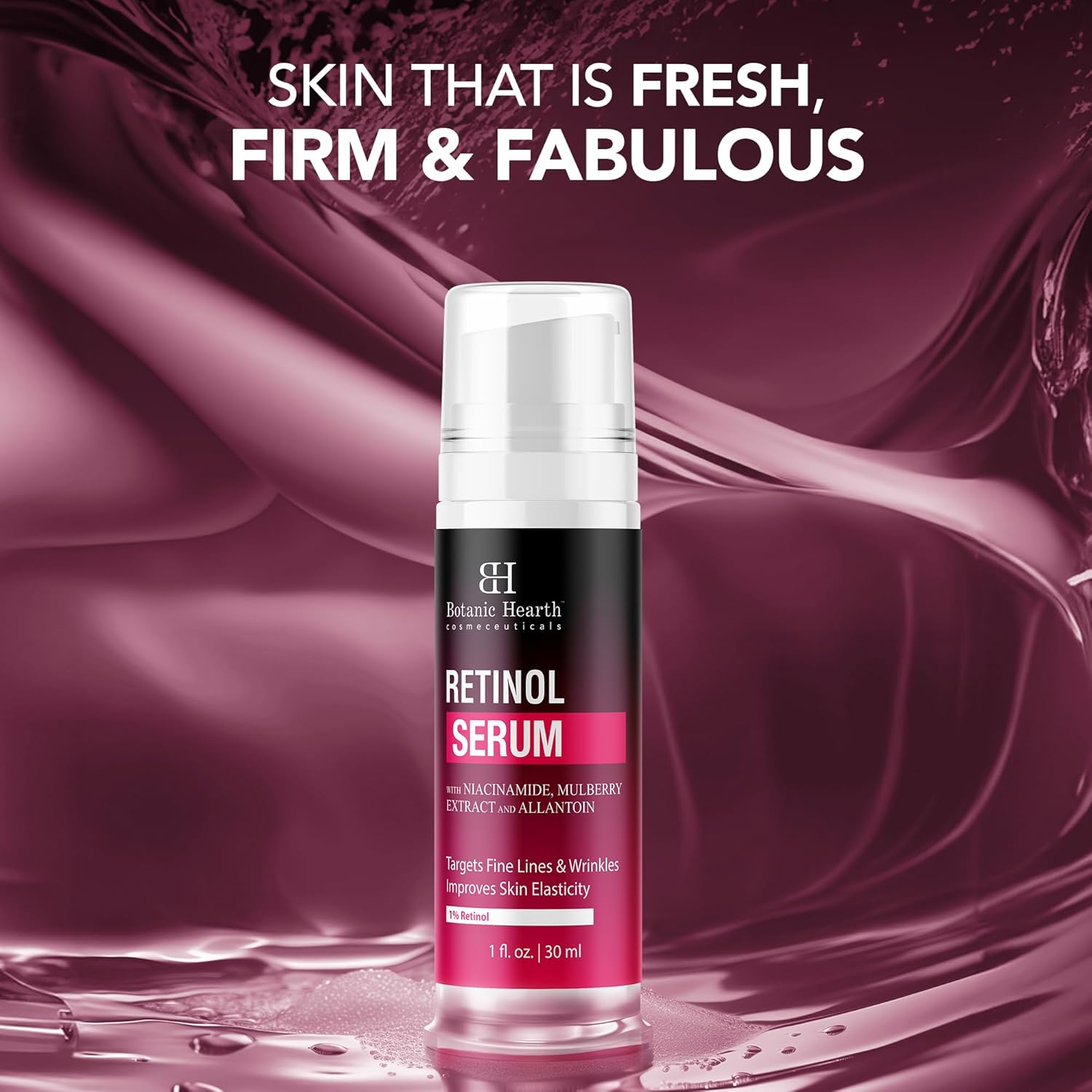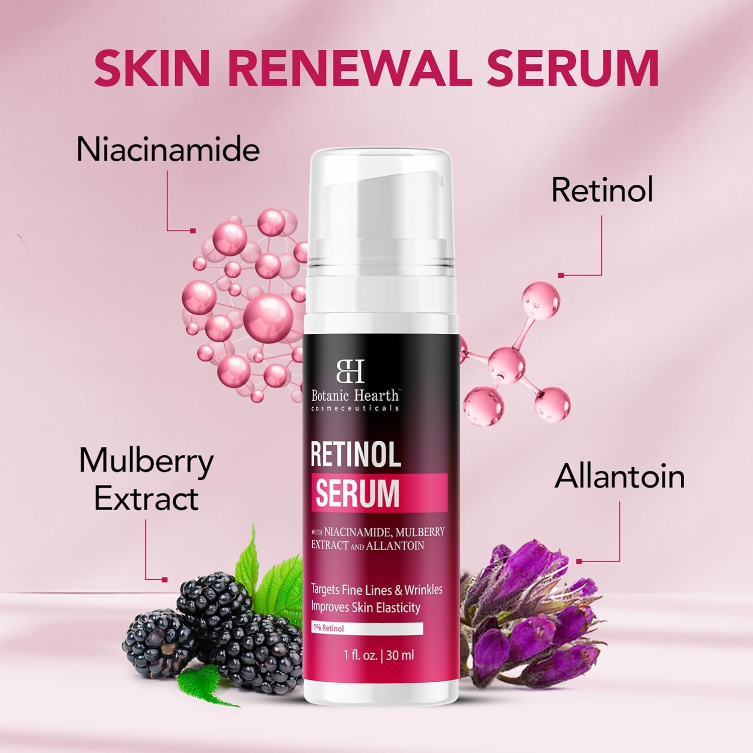 Botanic Hearth 1% Retinol Serum For Face With Niacinamide, Allantoin & Mulberry Extracts | Pore Refining & Brightening Face Serum For Wrinkles, Anti Aging | For All Skin Types |1 Fl Oz