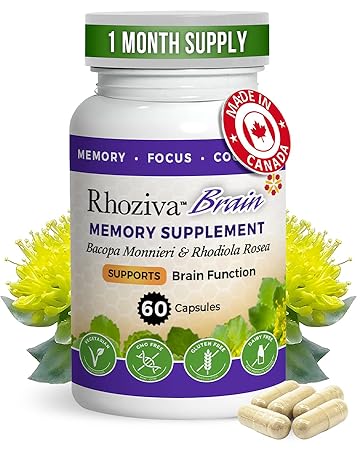 Brain supplement with Bacopa Monnieri, B Complex and Rhodiola Rosea for improved brain alertness and clarity.