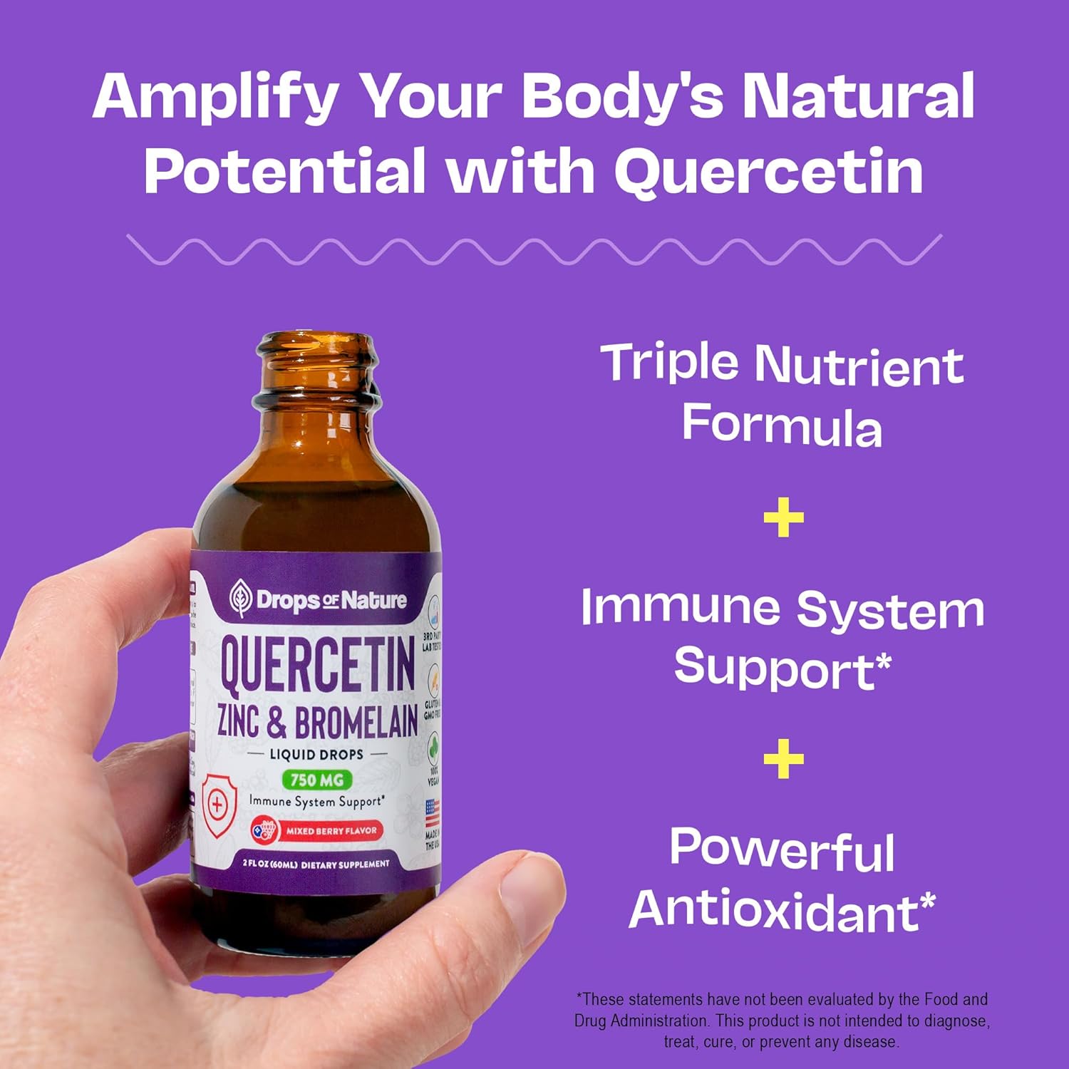 Quercetin Zinc & Bromelain Blend: Features a combination of flavonoids and zinc in a liquid delivery system for targeted antioxidant support; ideal for year-round immune wellness