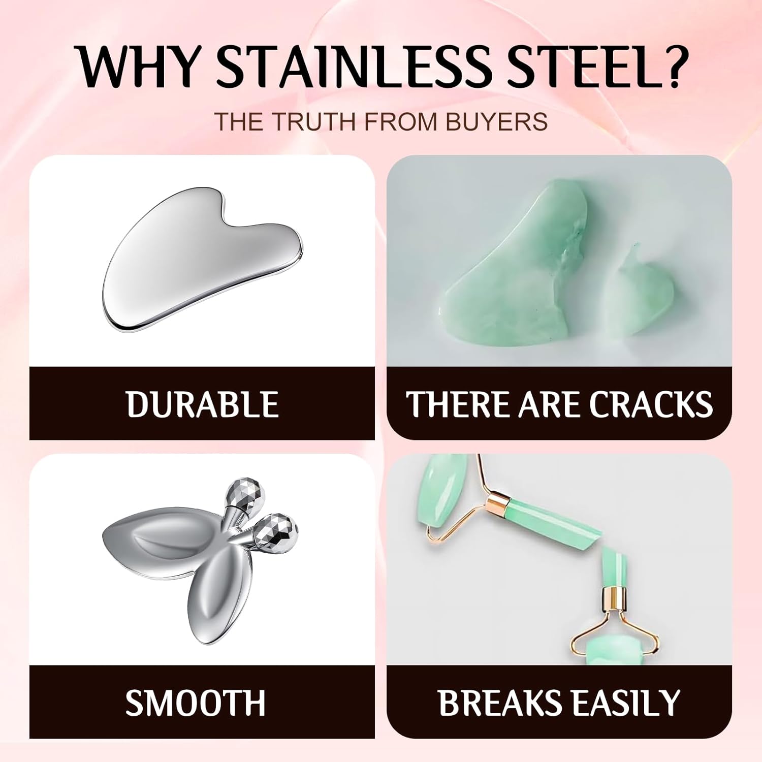【Quality Material】: This gua sha tool and facial roller are made of high-quality stainless steel. They offer high stability, reduce friction, and provide support for sensitive skin.