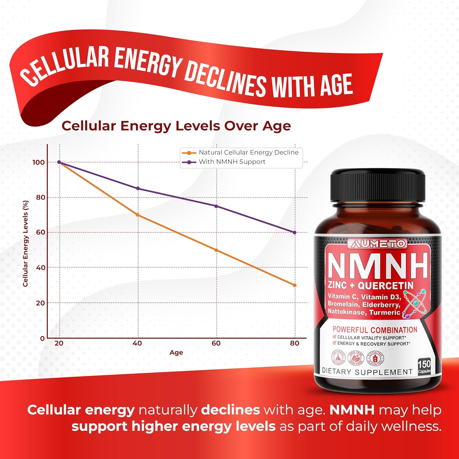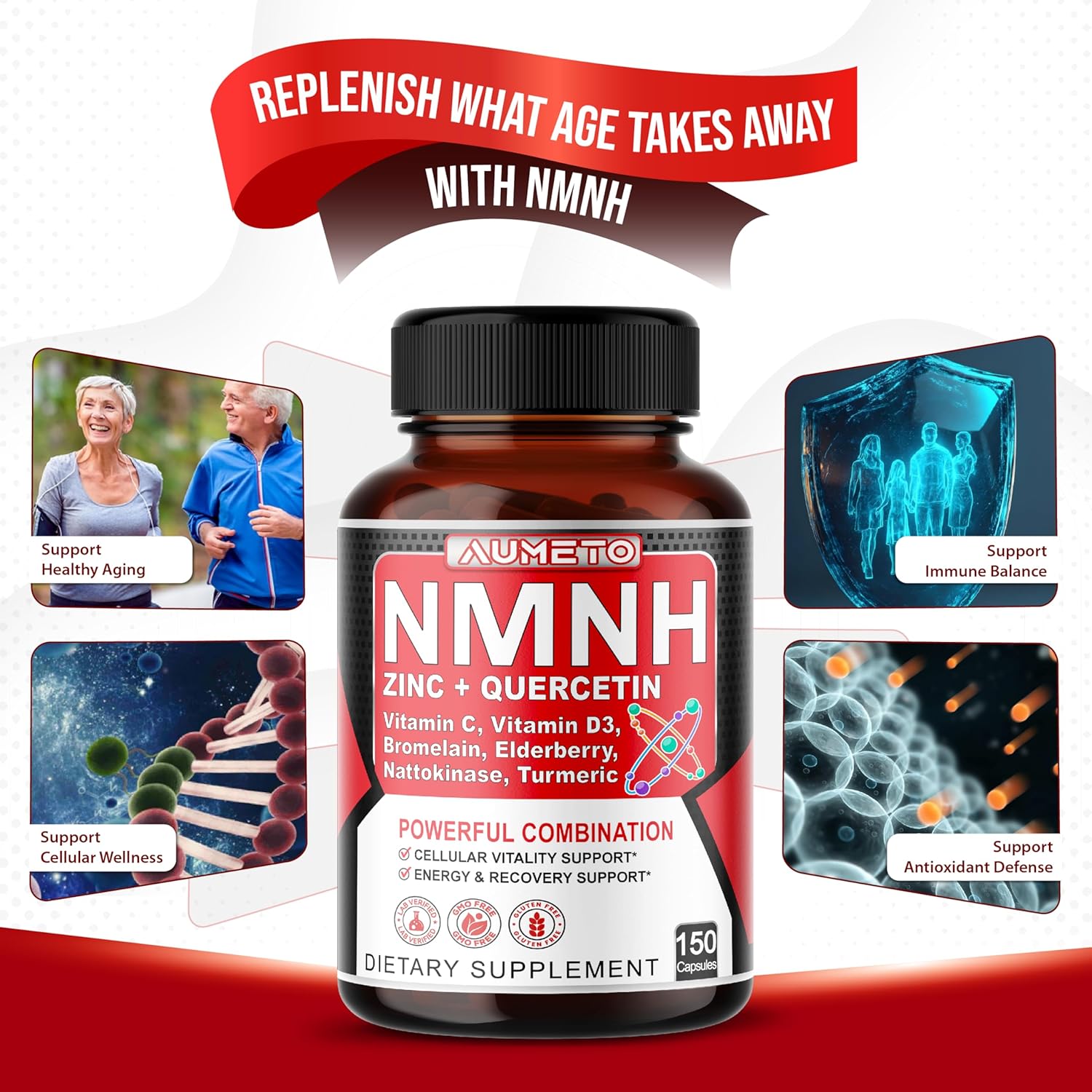 NMNH 600 mg with Zinc, Quercetin, Vitamin D3, Elderberry & Nattokinase – Daily Cellular Wellness & Healthy Aging Support – 150 Capsules – Made in USA
