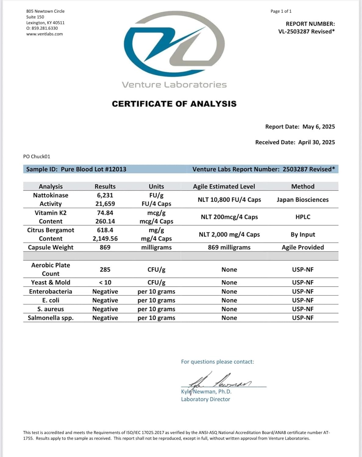 Advanced Circulatory Support – PureBlood promotes healthy blood flow, vascular function, and heart health with a clinical-strength blend of Vitamin K2, Citrus Bergamot, and Nattokinase.*