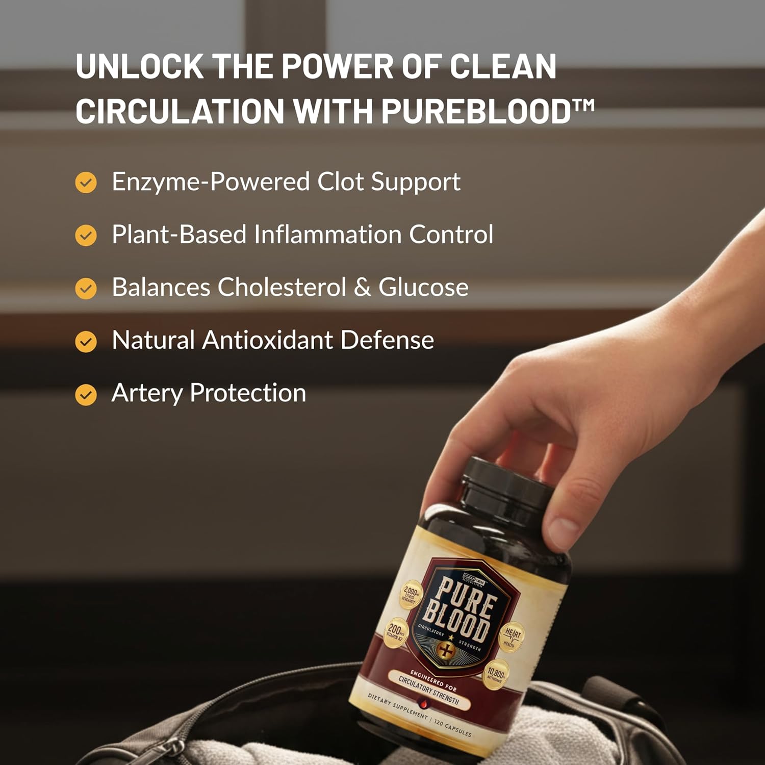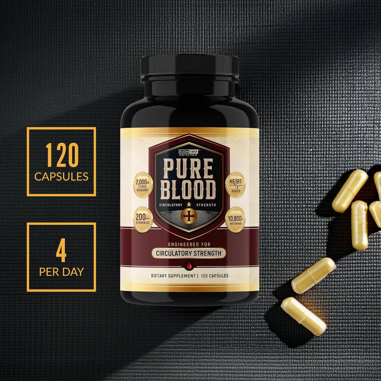 Pure Blood – Advanced Circulatory Support, Clinically Dosed Ingredients, Cholesterol & Lipid Balance, Clean + Transparent Formula, 120 Capsules