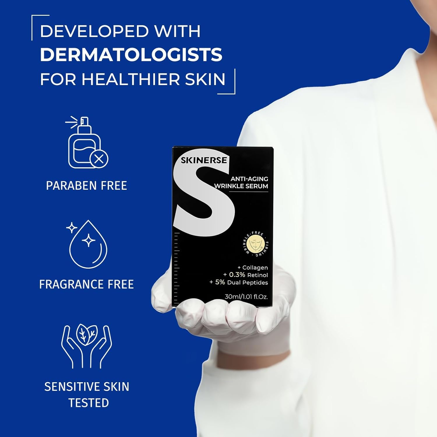 [ EFFECTIVE ANTI-AGING FORMULA ] Powered by pure retinol, 5% dual peptides, and 1% vitamins, this serum helps smooth wrinkles, refine texture, and protect against the visible effects of UV exposure.