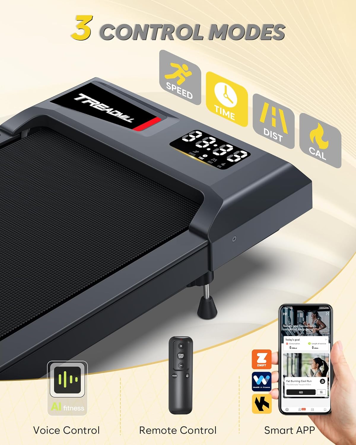 DUAL CONTROL: You can adjust your under desk treadmill settings(Distance, Speed, Steps, and Time) using the smart app or remote control. All controls are in the palm of your hand. Easy to operate without affecting your valuable exercise time.