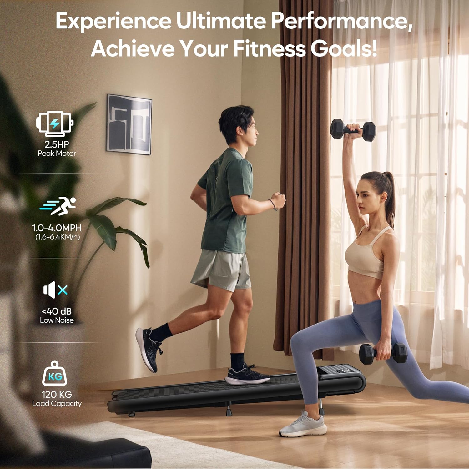 UNDER DESK TREADMILL: Incline treadmill adopts 2.5HP silent motor that can reach 1-4mhp (15-level speed gear). Fixed solid steel frame can load up to 265 lbs weight to ensure that it can withstand strict exercise plans and stay a longer life span